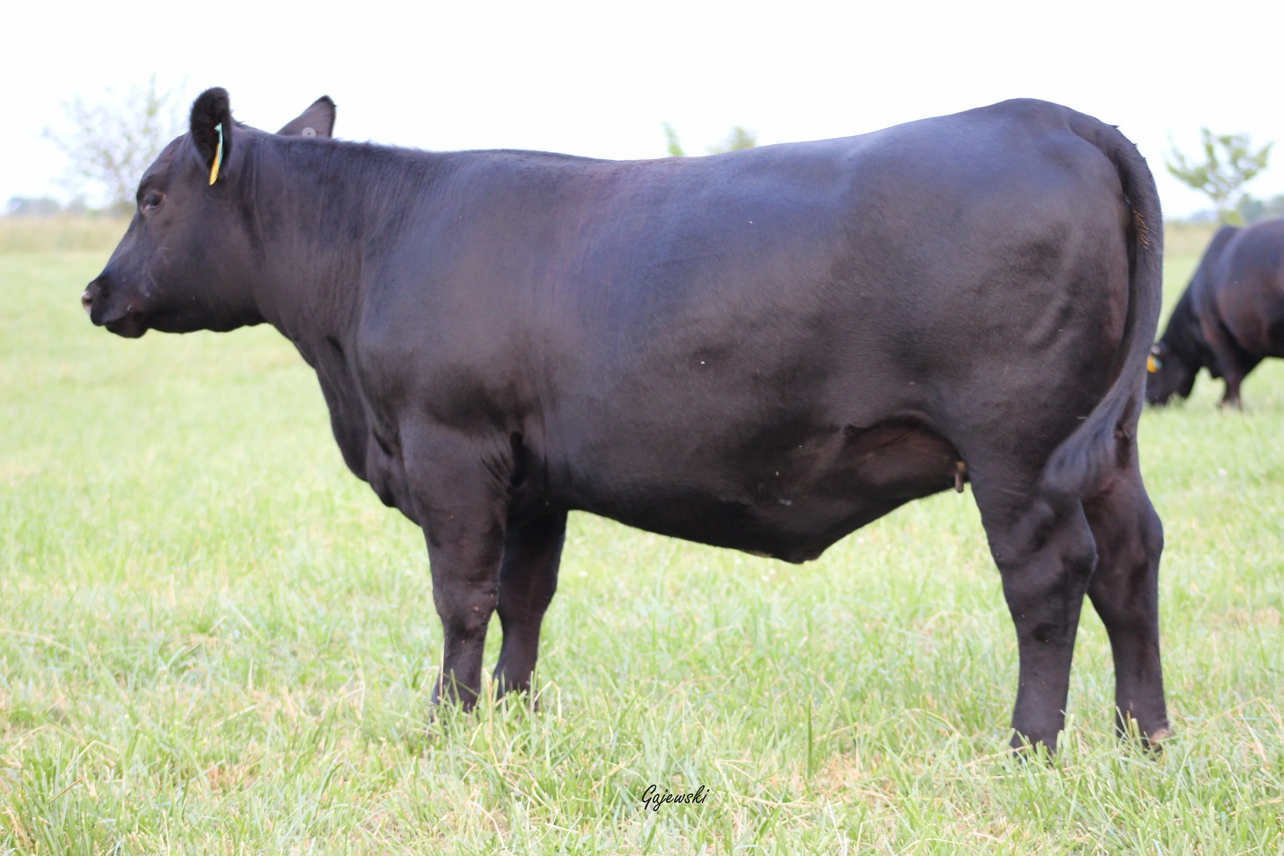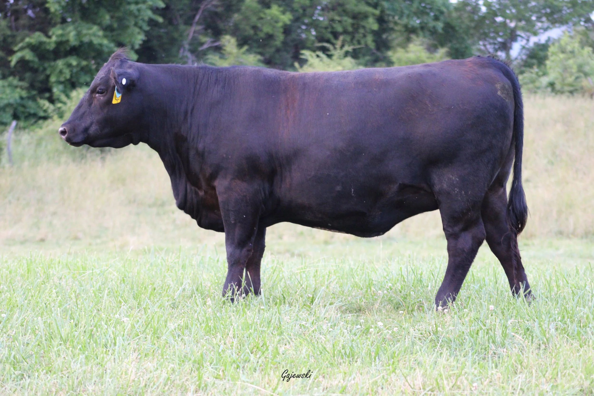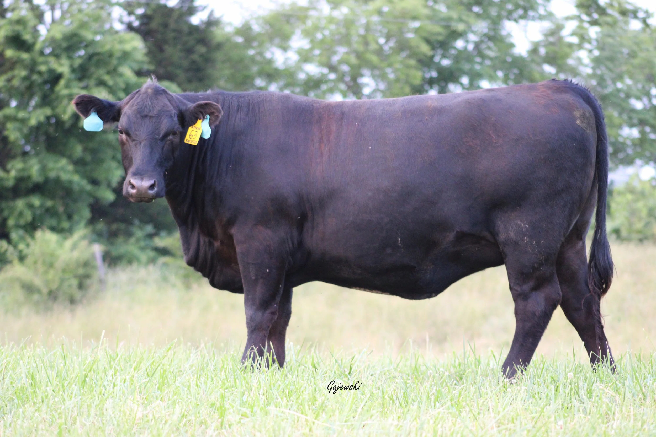 She may not have the flashiest set of EPDs on the place or a pedigree that stands out, but believe us when we say that Ashley is one of the most impressive females we have ever raised. For the longest time, we had thought J209 was a product of the A110 Athena x Poss Ratified flush, which would have explained the explosive growth this heifer had. It wasn’t until we sent blood off for parentage did we realize this was actually a bull-bred calf that was just born early. These Alpha J131 calves have blown our expectations away as far as growth performance. A great example of this is J209’s paternal brother, GAJ Maximus 065. Both of these two individuals were bull-bred clean-up calves who competed with, and outgrew an absolutely stacked group of Embryo and Ai calves. For that reason and that reason alone, we have selected Ashley as a donor female. We have successfully flushed her once gaining 13 embryos. This female fully embodies what we are trying to achieve here at Gajewski Farms: Performance driven cattle backed by real-world data to make the Commercial man more money.
